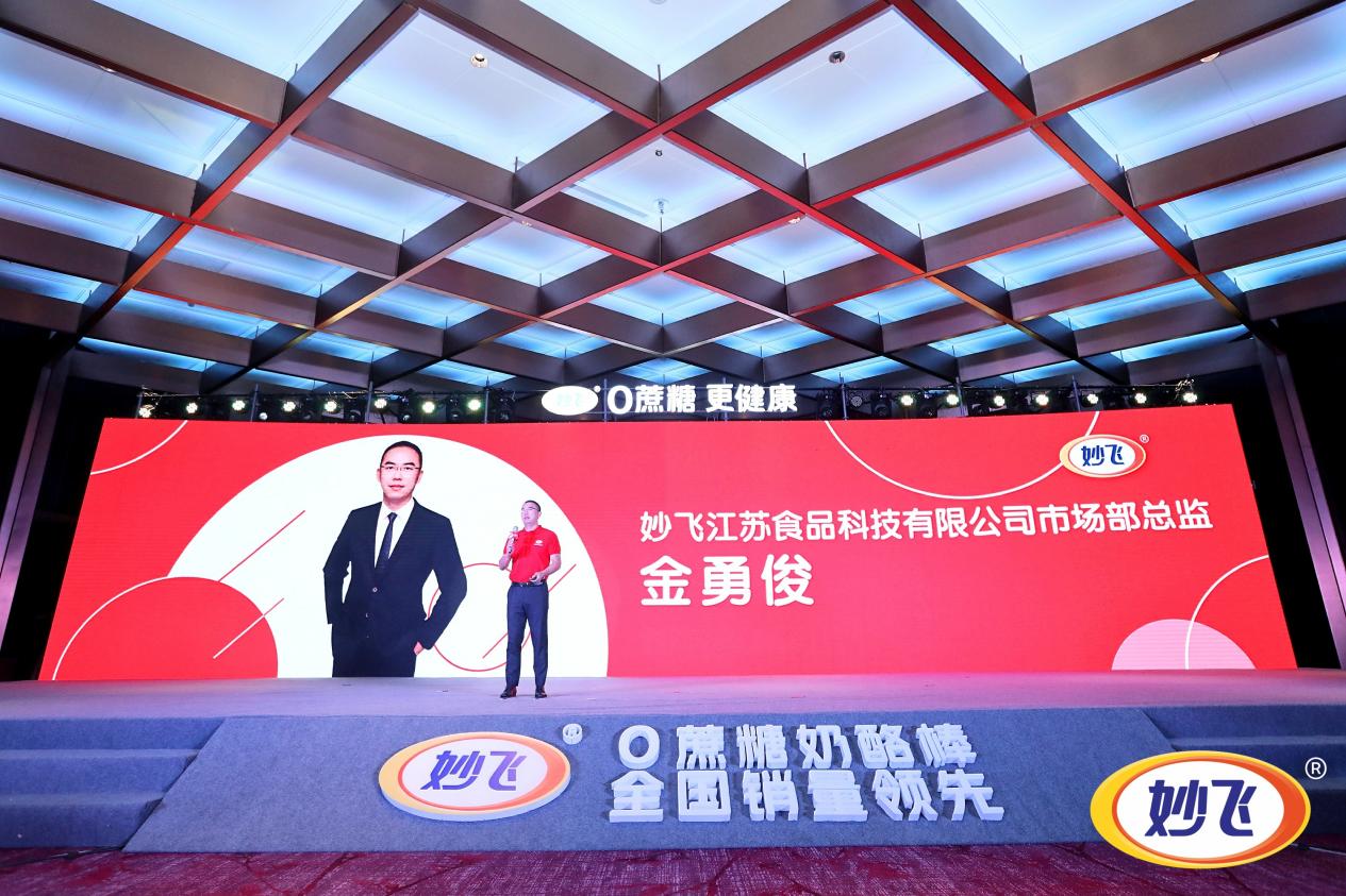 圖片信息:妙飛江蘇食品科技有限公司市場部總監(jiān)金勇俊宣布明星劉濤為妙飛品牌代言人