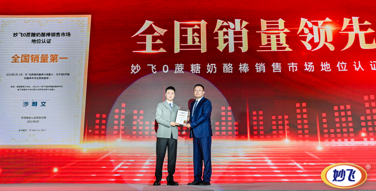 全球權(quán)威行業(yè)機構(gòu)——弗若斯特沙利文咨詢公司通過嚴謹調(diào)研得出數(shù)據(jù)結(jié)論:“妙飛0蔗糖奶酪棒,全國銷量第一”。在發(fā)布會上妙飛首次展示這一認證結(jié)果,進一步驗證了妙飛在奶酪棒領(lǐng)域的市場領(lǐng)導(dǎo)地位。
